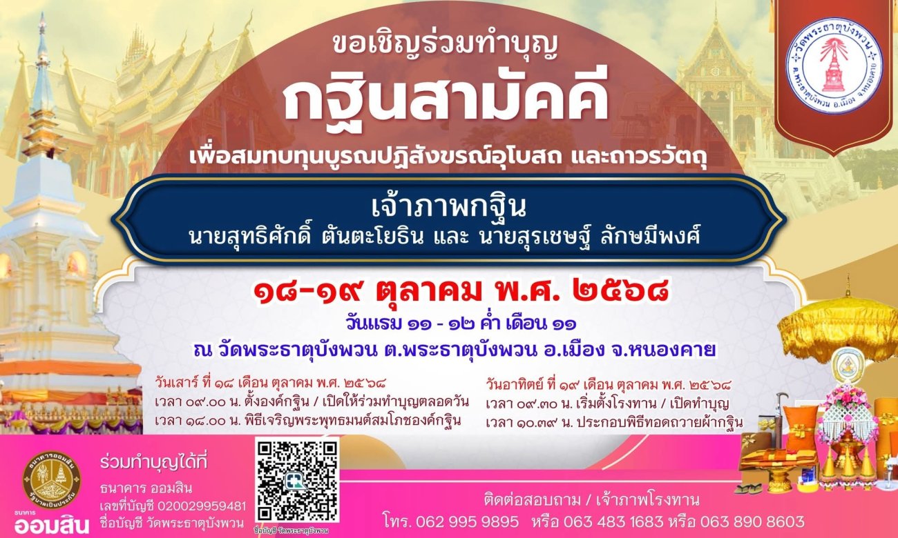 ขอเชิญพุทธศาสนิกชนทุกท่าน ร่วมงานกฐินสามัคคี ประจำปี พ.ศ. 2568