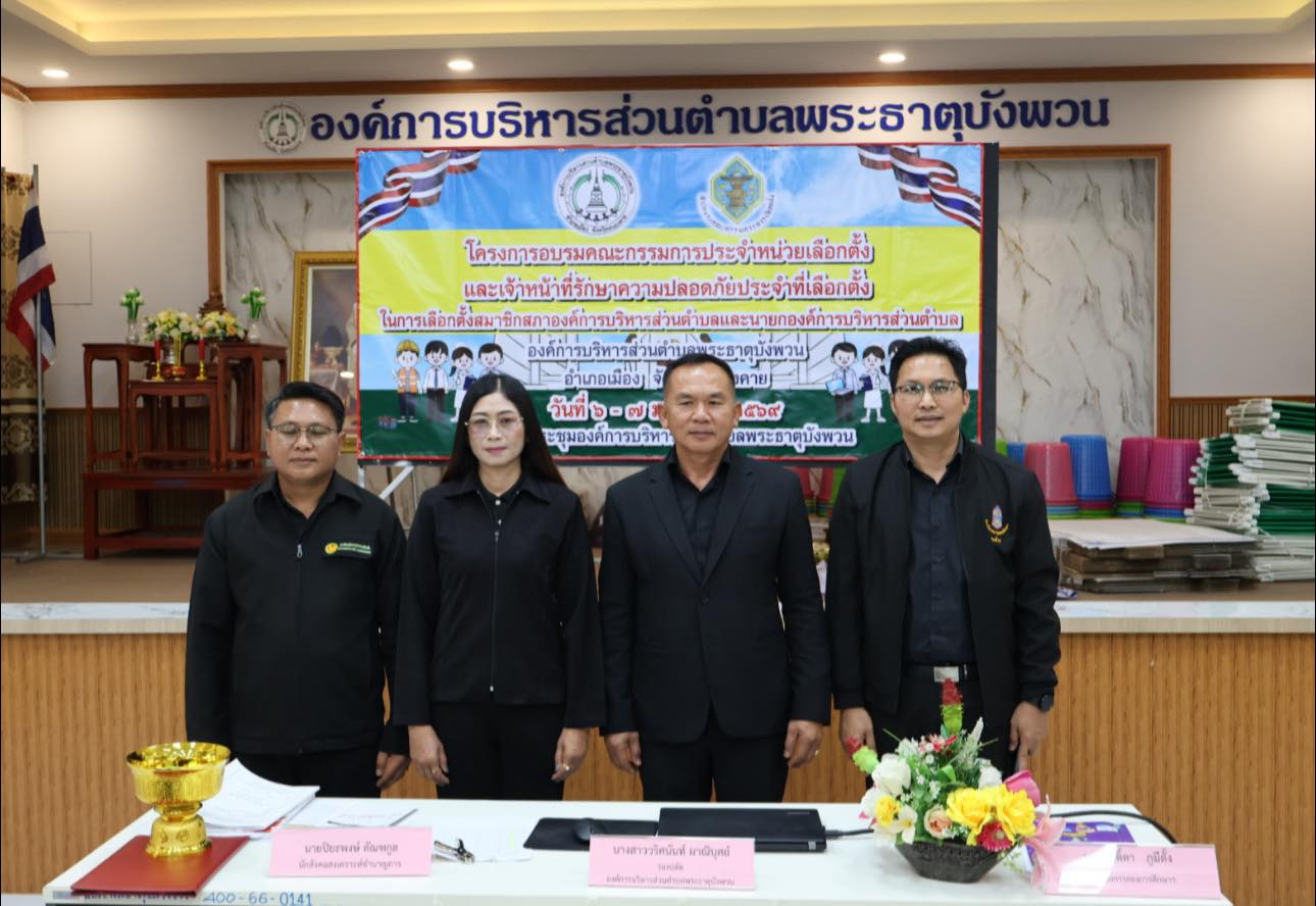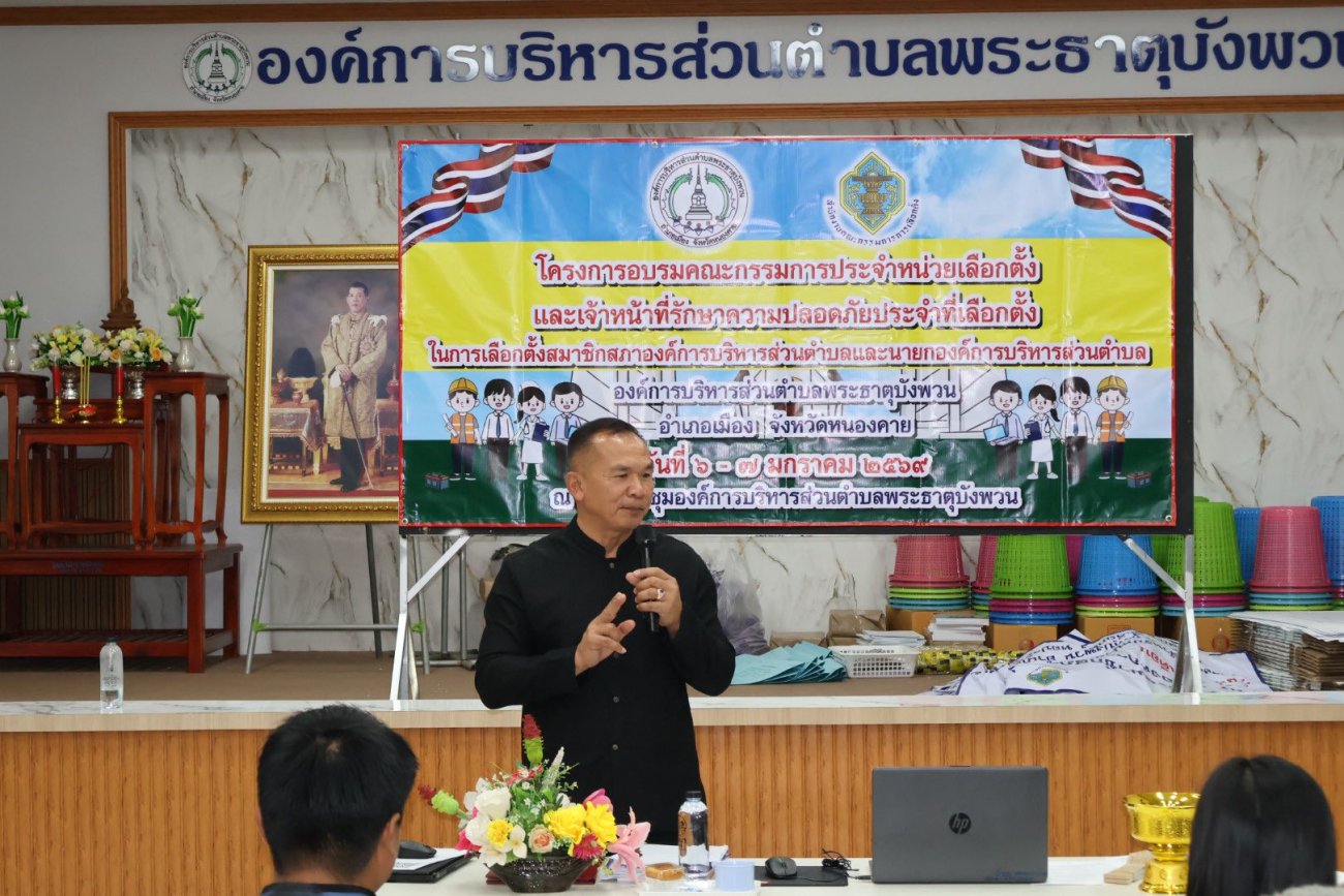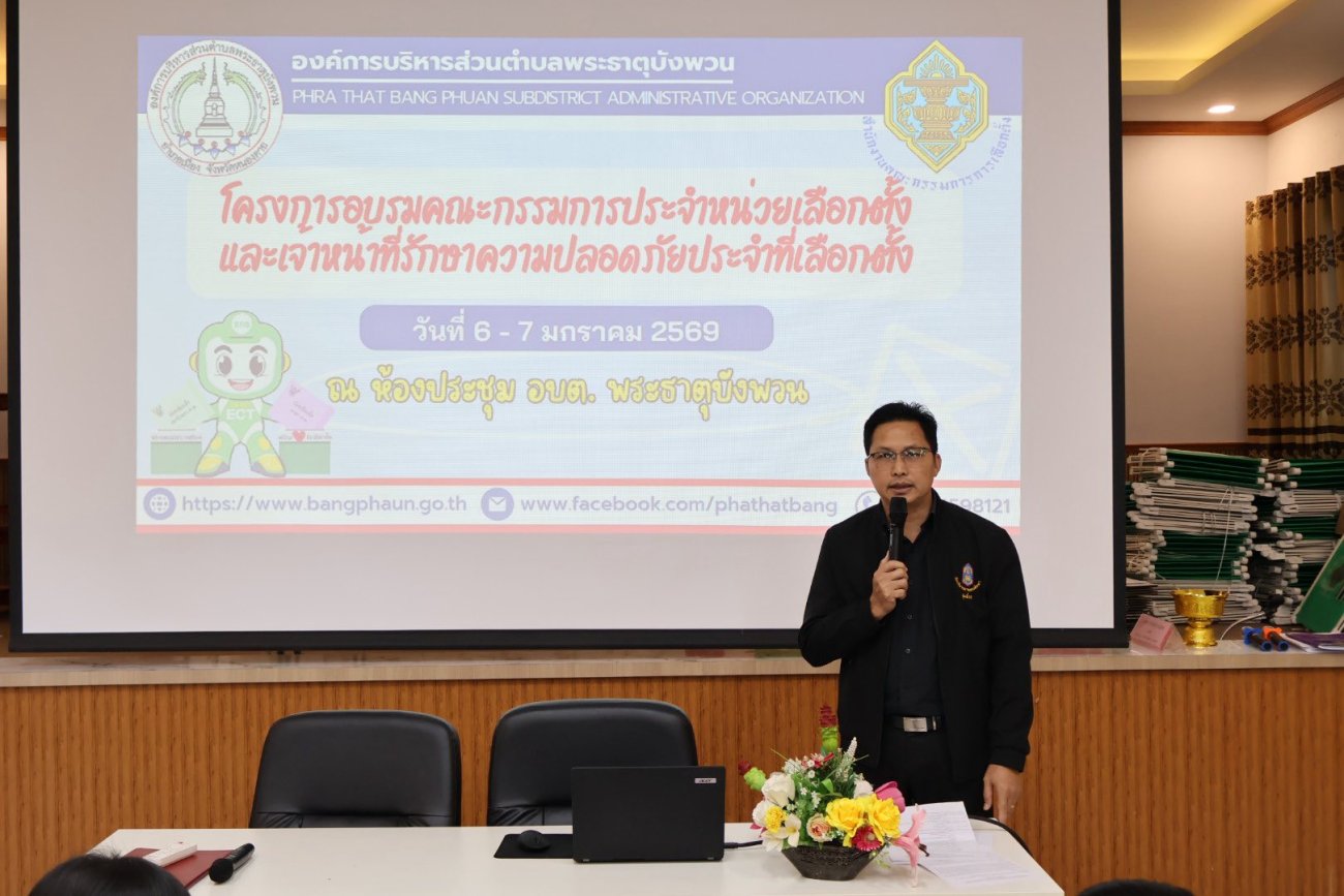 วันที่ 6 - 7 มกราคม 2569 องค์การบริหารส่วนตำบลพระธาตุบังพวน จัดโครงการอบรมคณะกรรมการประจำหน่วยเลือกตั้งและเจ้าหน้าที่รักษาความปลอดภัยประจำที่เลือกตั้ง ในการเลือกตั้งสมาชิกสภาองค์การบริหารส่วนตำบล และนายกองค์การบริหารส่วนตำบล องค์การบริหารส่วนตำบลพระธาตุบังพวน หมู่ที่ 1 - หมู่ที่ 14 ณ ห้องประชุมองค์การบริหารส่วนตำบลพระธาตุบังพวน