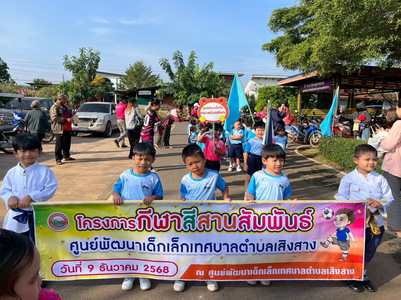 โครงการแข่งขันกีฬาสีสานสัมพันธ์ประจำปีการศึกษา 2568 โดยวันนี้ 9 ธันวาคม 2568 นายจุมพล คูประทุมศิริ รองนายกเทศมนตรีตำบลเสิงสาง เป็นประธานเปิดการแข่งขันกีฬาสีสานสัมพันธ์ ศูนย์พัฒนาเด็กเล็กเทศบาลตำบลเสิงสาง พร้อมด้วยคณะผู้บริหาร สมาชิกสภาเทศบาลตำบลเสิงสางร่วมเป็นเกียรติ การจัดการแข่งขันในครั้งนี้เพื่อให้นักเรียน ได้ทำกิจกรรมร่วมกัน มีกิจกรรมออกกำลังกายที่เหมาะสมกับวัย โดยการแข่งขันตักไข่ กรอกน้ำใส่ขวด จักรยานขาไถ เก้าอี้ดนตรี ชักเย่อ และโยนบอลใส่ตะกร้า และขอขอบคุณคณะกรรมการตัดสินกีฬาโดยเจ้าหน้าที่จากกองช่างมาตัดสินกีฬา ณ ศูนย์พัฒนาเด็กเล็กเทศบาลเทศบาลตำบลเสิงสาง
